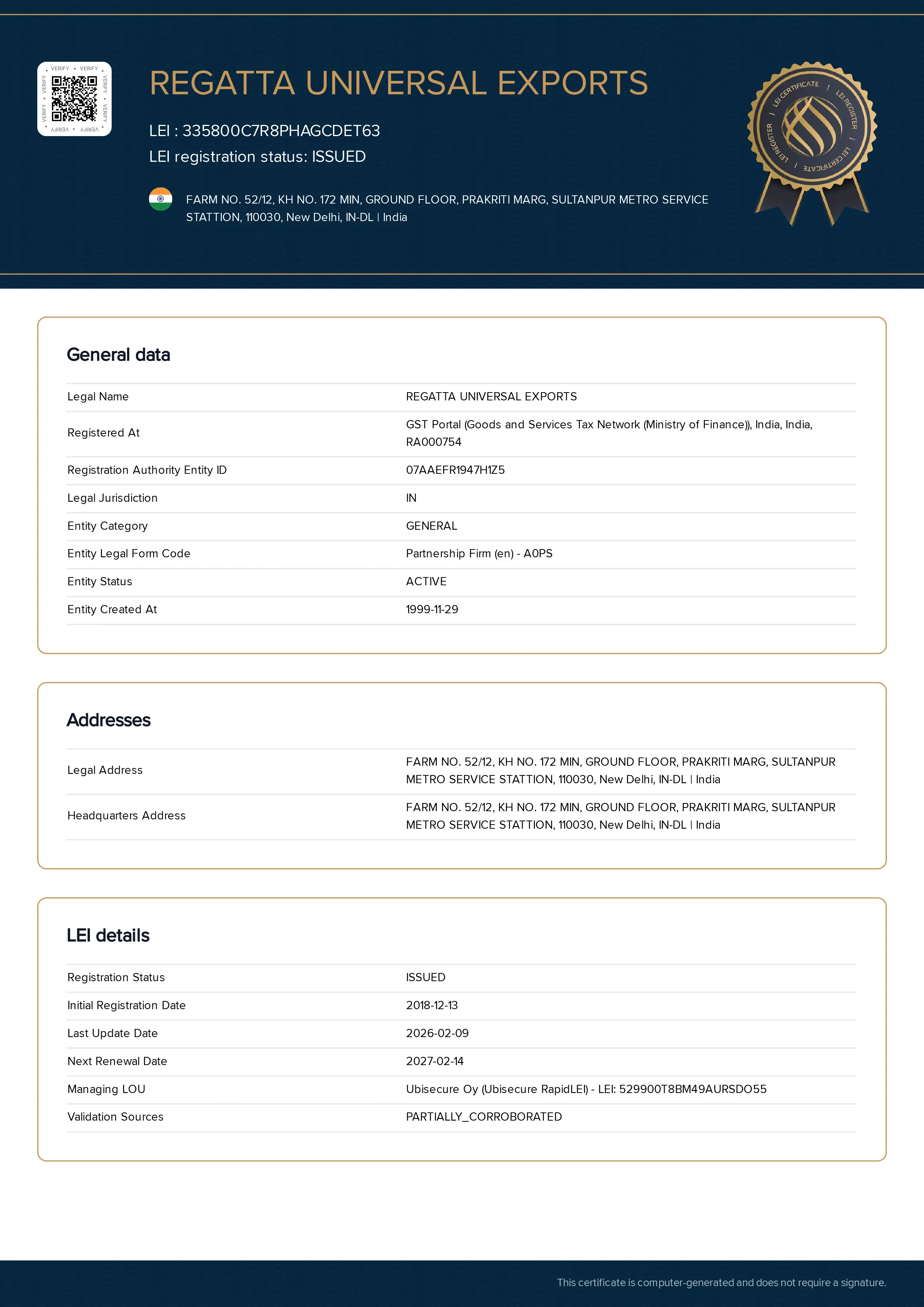 REGATTA UNIVERSAL EXPORTS