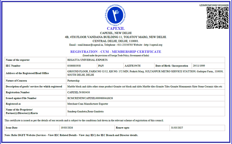 REGATTA UNIVERSAL EXPORTS - A GLOBALLY RECOGNIZED NATURAL STONE EXPORTER FROM INDIA