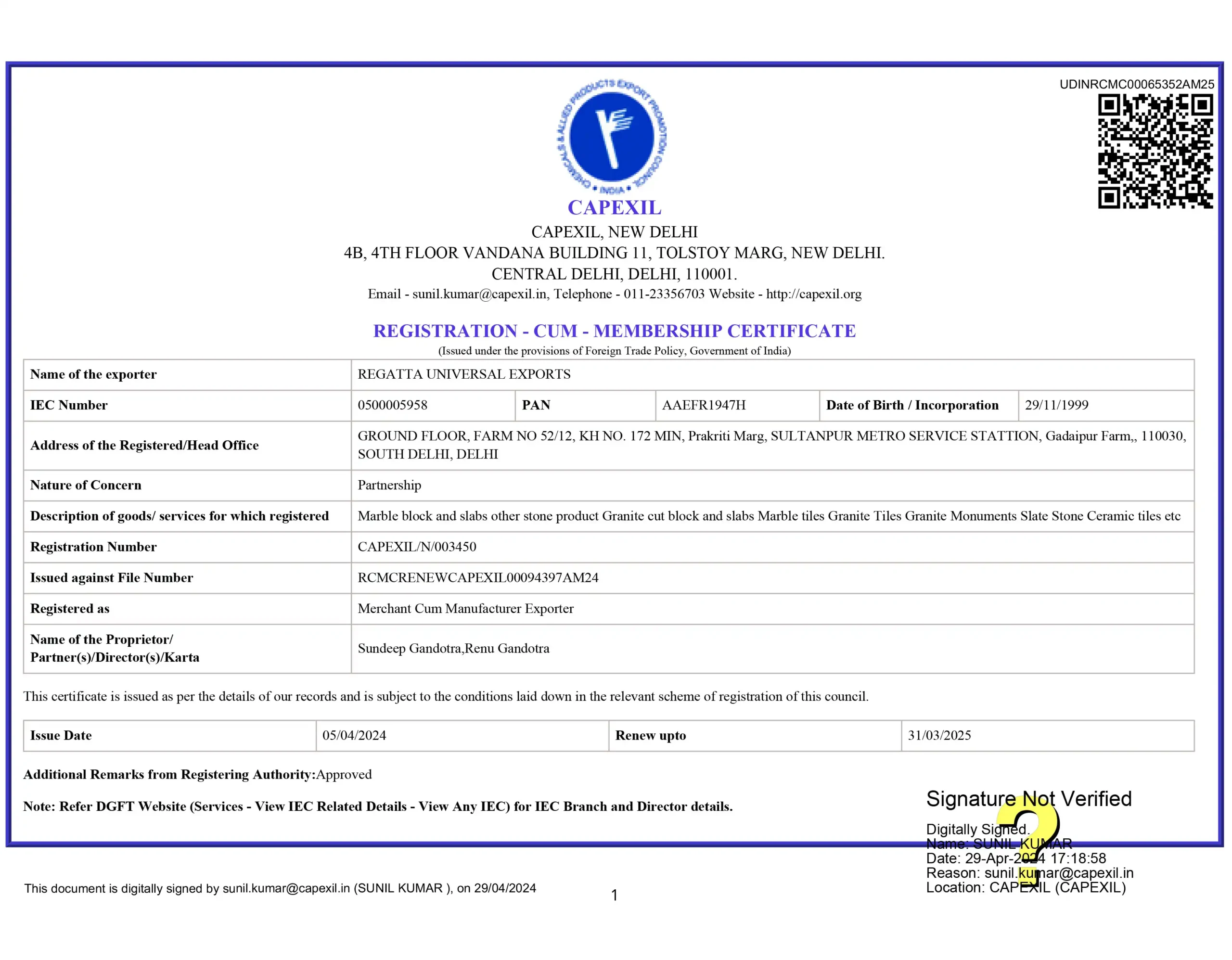 - Certificate of Compliance (CE)