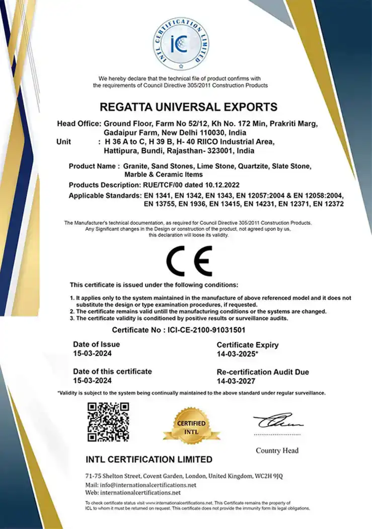 All these certificates show that your manufacturer is authentic and it has credibility in the competitive market. Buying a variety of natural stone from such a company will be highly beneficial to buyers of natural stone.